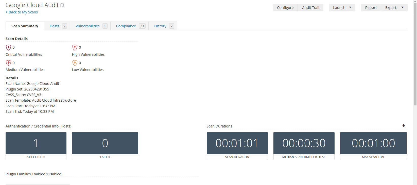 Bám sát tiêu chuẩn bảo mật CIS , kết quả Audit Google Cloud được chia ra làm 5 phần chính bao gồm : Identity and Access Management , Logging and Monitoring , Networking , Virtual Machines và Google Cloud Storage .
