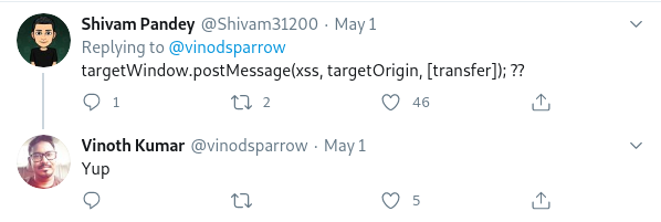Ở message gửi đi của postMessage, reseacher đã gửi đi một Object, để ra được POC như trên là thành quả phân tích rất dài:
