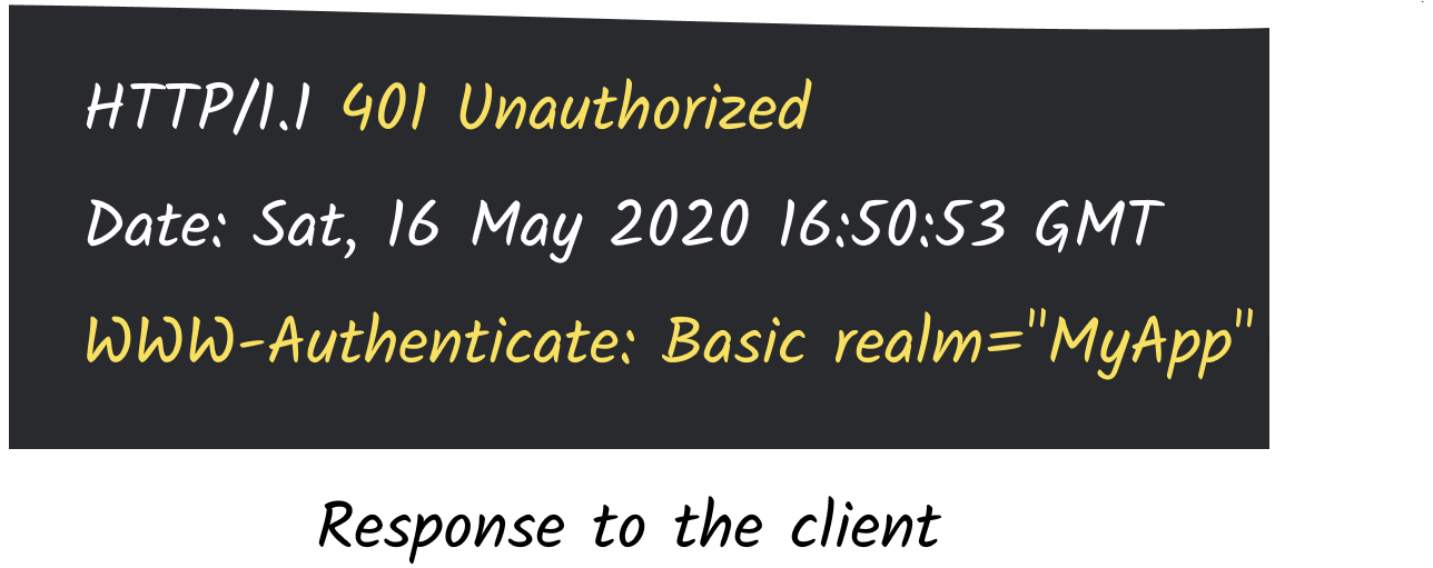 Khi server trả response cho client, thì có kèm theo 1 chuỗi là www-authenticate: Basic realm="MyApp"