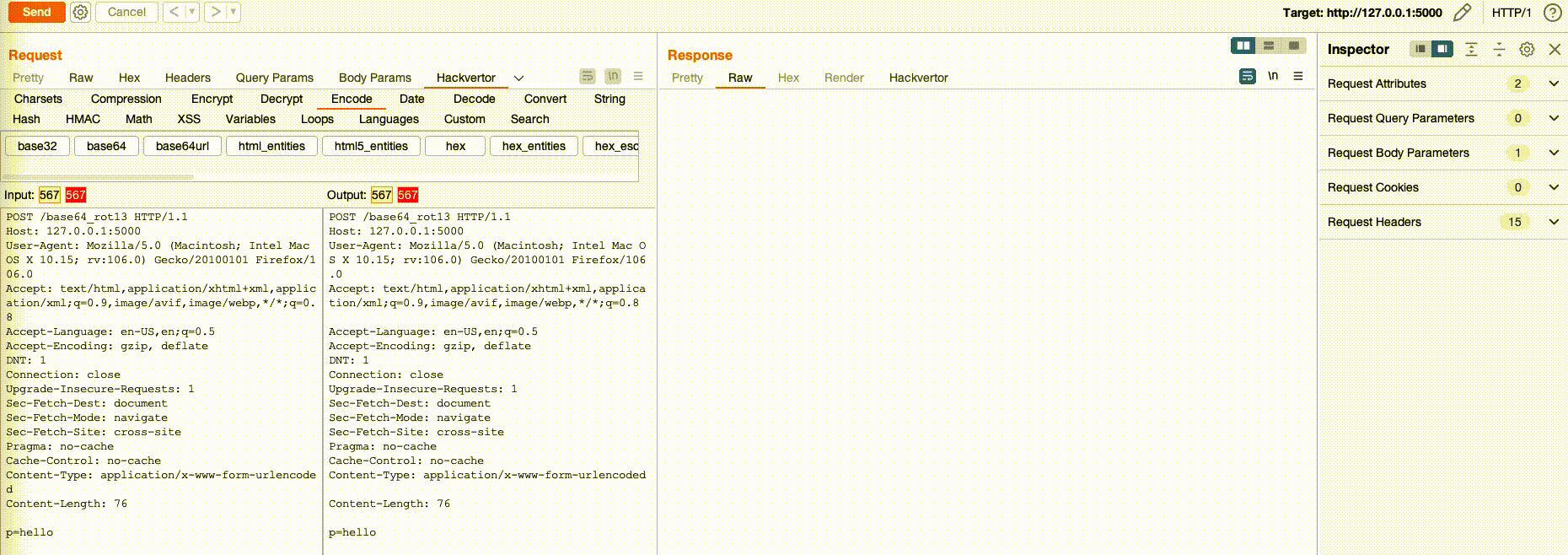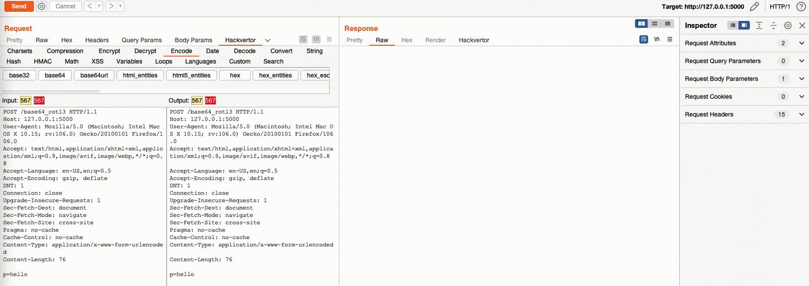 Khi chuyển từ tab Hackvertor sang tab Raw/Pretty thì việc xử lý payload của Hackvertor vẫn sẽ được thực hiện