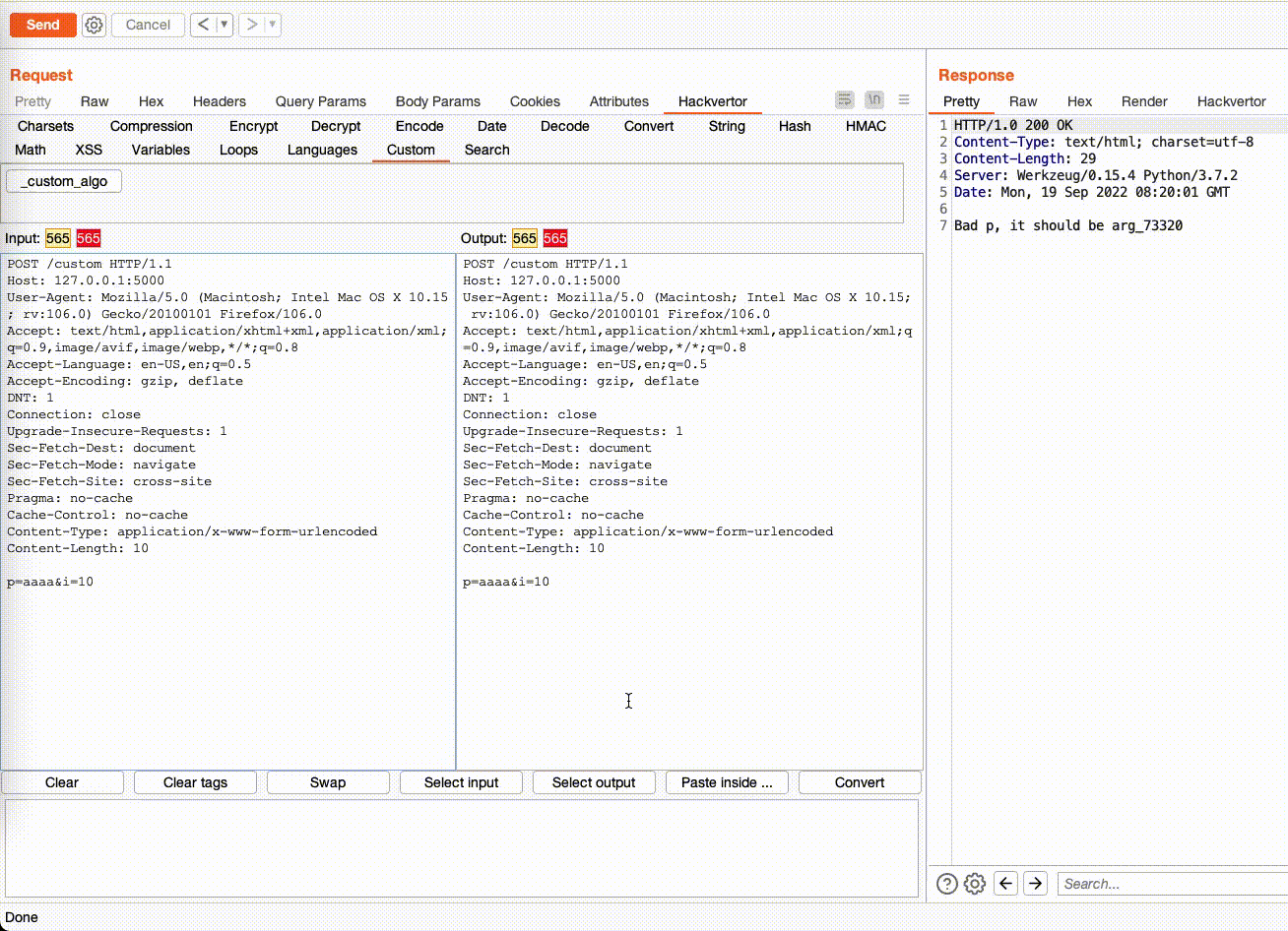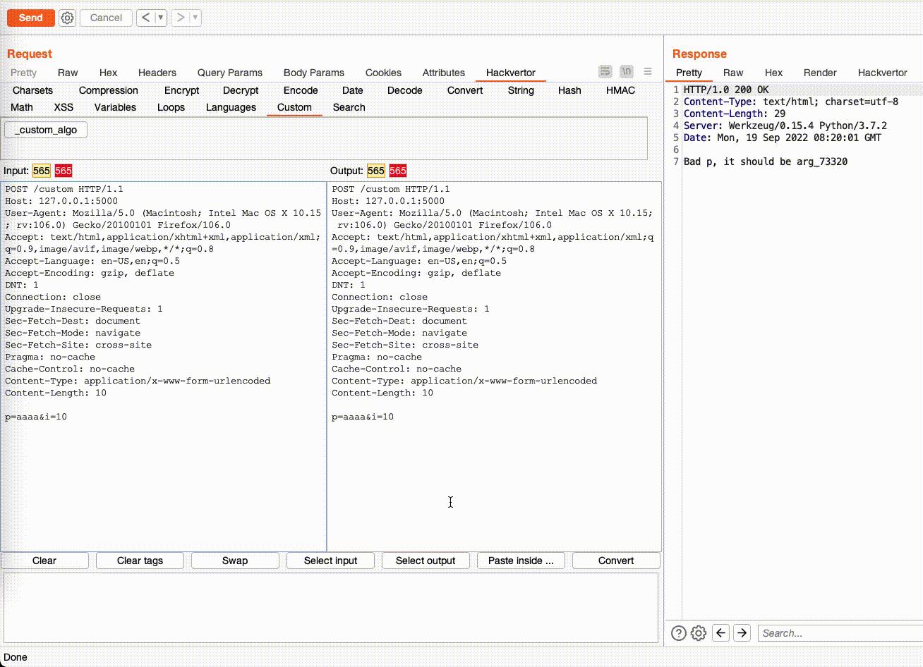 Dù làm theo cách nào thì Hackvertor cũng sẽ định nghĩa sẵn 2 biến sau trong code: