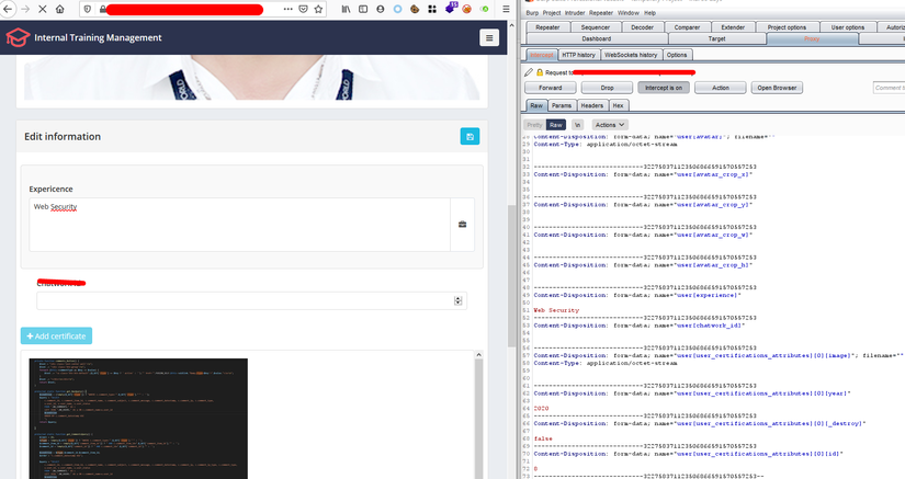 Vậy nếu với website sử dụng Javascript để kiểm tra ở phía client các bạn sẽ làm sao để bypass? Ví dụ client cho bạn nhập 1 số nhưng chặn việc nhập số âm hoặc số quá lớn. Các bạn có thể nhập vào 1 số hợp lệ, tiếp đó chặn bắt lại request và sửa số đó thành số âm hoặc 1 số lớn. Hoặc nếu website có chức năng upload ảnh và sử dụng javascript để kiểm tra đuôi file có phải là .png hay .jpg không. Các bạn chỉ cần up 1 file ảnh hợp lệ rồi sau đó sửa đổi đuôi file sang đuôi mình mong muốn như: .html, .php,..image. Demo bypass chức năng upload file: Chức năng uplaod ảnh chặn upload file php ở phía client Bước 1: Upload 1 file php không thành công