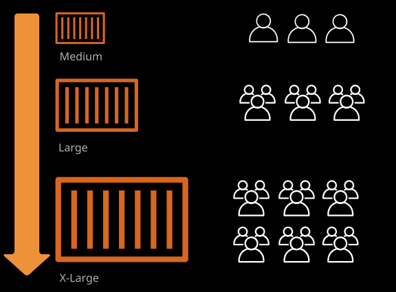 - Vertical scaling đạt được bằng cách thêm tài nguyên bổ sung dưới dạng CPU hoặc bộ nhớ vào máy hiện có. Bằng cách đó, máy có thể phục vụ thêm khách hàng hoặc thực hiện các tác vụ tính toán nhanh hơn để bạn có thể đi từ máy chủ trung bình (medium server) đến máy chủ lớn (large server) hay thậm chí đến máy chủ cực lớn (extra large server) và khi làm như vậy, bạn có thể đối phó với sự gia tăng không ngừng số lượng người dùng.