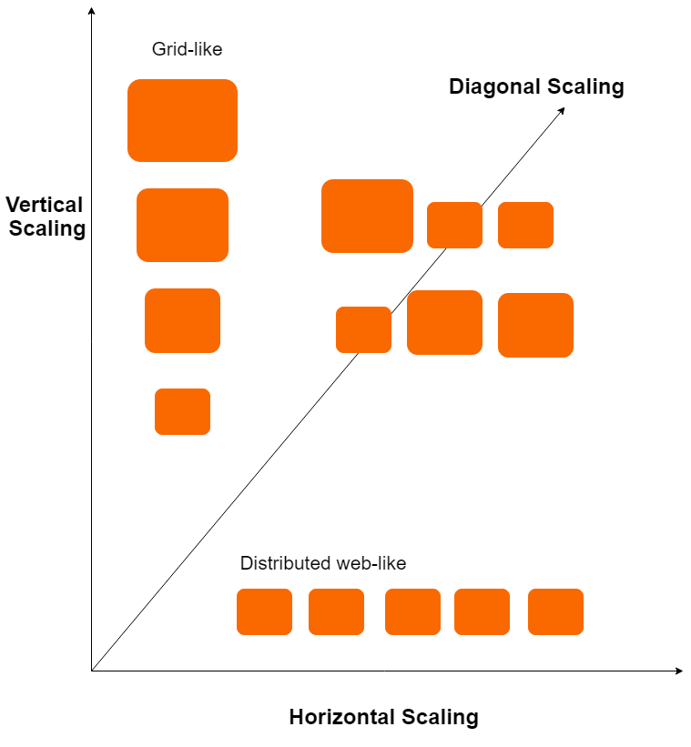 - Đây là phương pháp kết hợp hai cách scaling trên. Diagonal scaling cung cấp sự linh hoạt cho khối lượng công việc đòi hỏi nguồn lực bổ sung trong một thời gian cụ thể.