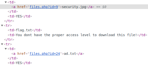 Như vậy, ID của tệp tin flag.txt là 159df48875627, truy cập link http://insecure.vford.com:8010/files.php?id=159df48875627 là sẽ tải được flag.txt về máy.