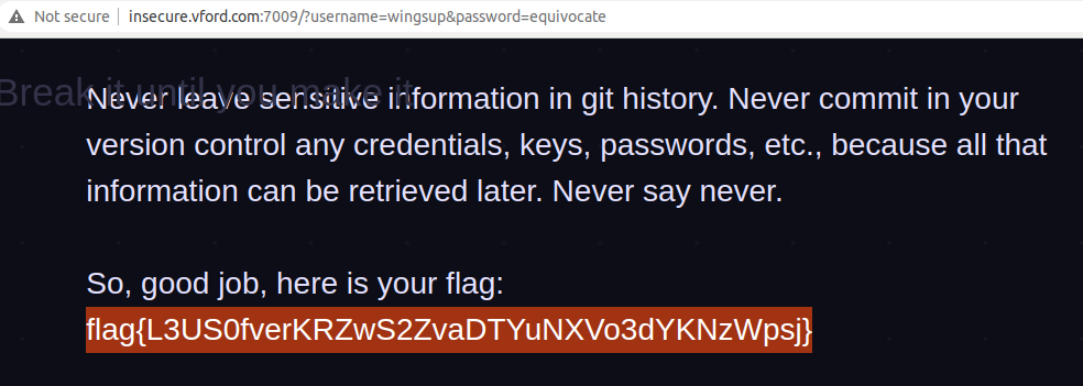 Sử dụng cặp username/password này, chúng ta có thể đăng nhập và lấy flag.