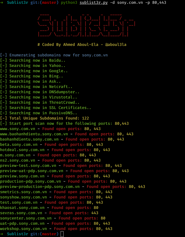 python3 sublist3r.py -d sony.com.vn -p 80,443