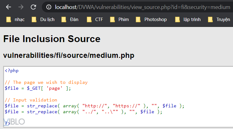 Ở ví dụ tiếp theo này , hàm str_replace() sẽ xoá tất cả các giá trị được gán như là http:// ; https:// và các kí tự như ../ ; ..\ và thay thế bằng giá trị "" , và trả lại trang ban đầu cho người dùng