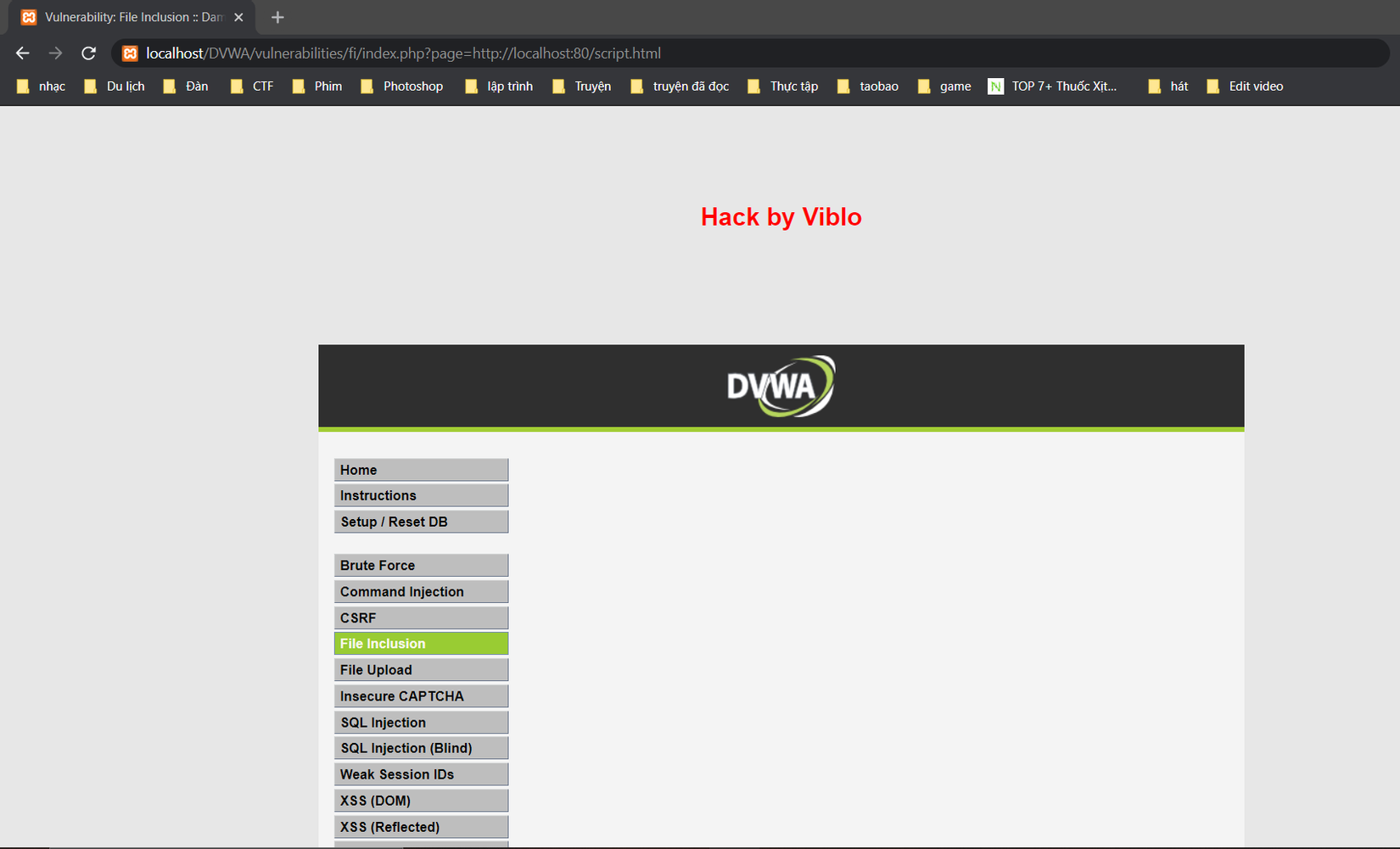 Sau đó mình nhúng link file này vào trong trang web mình muốn tấn công và thu được kết quả :