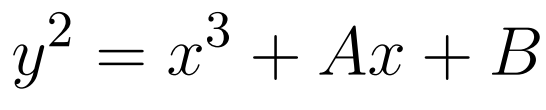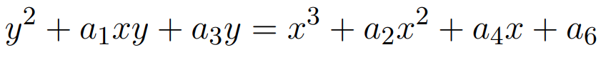 Với đống lí thuyết như vậy thì mình chịu, tuy nhiên về cơ bản thì đường cong Elliptic có dạng tổng quát phương trình Weierstrass như sau: