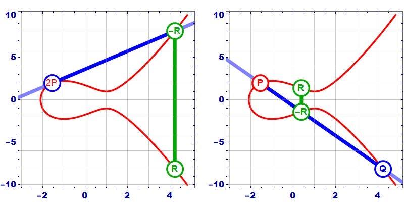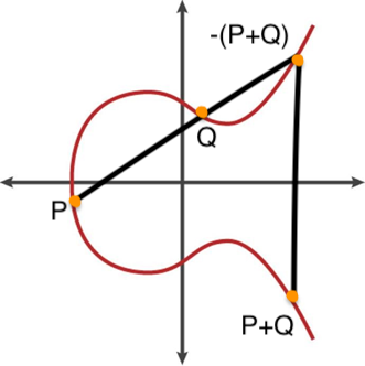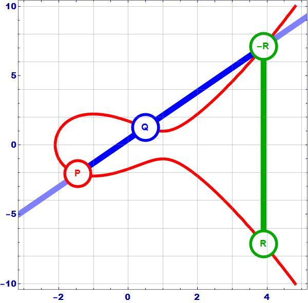 - Đường thẳng A cắt đường cong Elliptic tại điểm -R = -(P + Q)