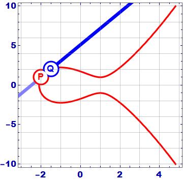 Trong trường hợp 2 điểm P và Q trùng nhau, đường thẳng A là tiếp tuyến với đường cong tại điểm P. Thực hiện tương tự ta được điểm 2P.
