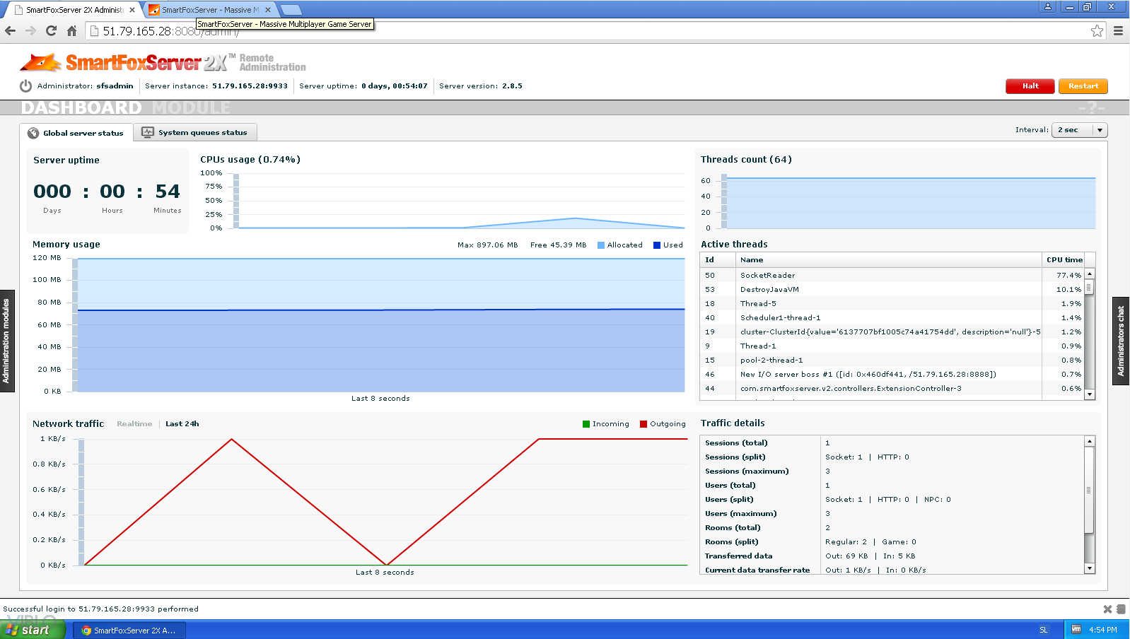 port 8888: là port socket, chắc là connect tới SmartFoxServer