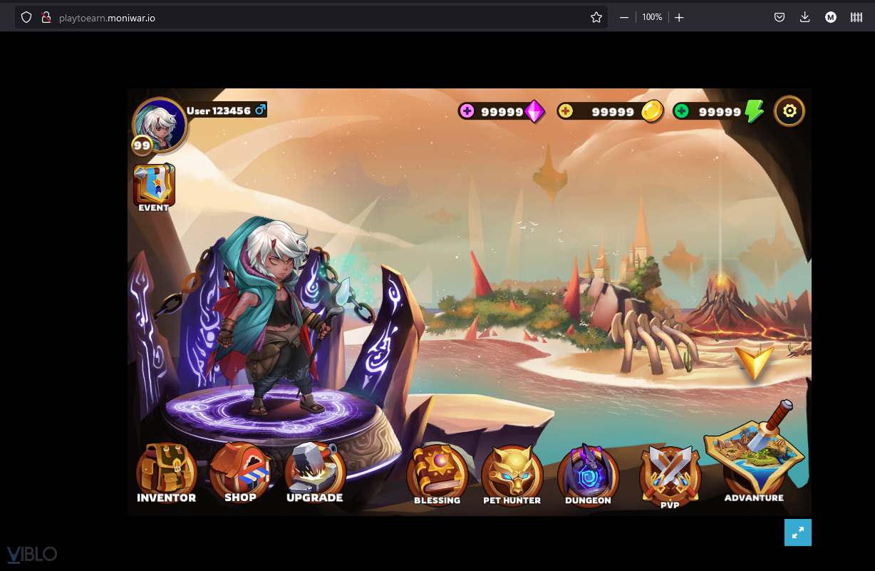 Do sử dụng cloudflare nên mình đã cố gắng tìm kiếm thông tin trong đống subdomain kia thì thấy có 1 trang web test game http://playtoearn.moniwar.io