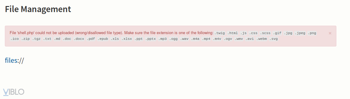 Sử dụng john để crack passwd admin ra được passwd là strawberry, đăng nhập vào http://registry.htb/bolt/bolt. Ở đây có 1 trình upload file, ta thử upload file shell lên đây nhưng mà nó k cho upload file php lên.