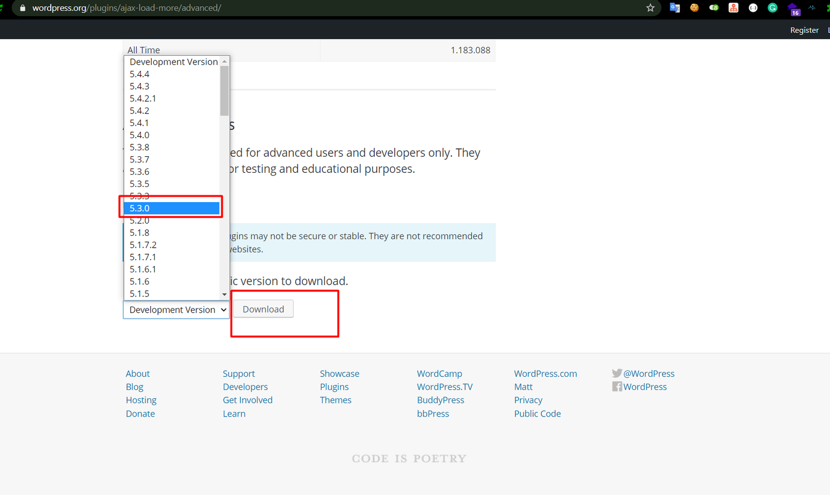 Do wordpress plugin là open source nên mình có thể tải về để nghiên cứu. Với tiêu đề lỗi là Ajax Load More < 5.3.2 - Authenticated SQL Injection có nghĩa là plugin Ajax Load More bị lỗi SQL injection ở version nhỏ hơn 5.3.2. Với những thông tin như trên mình sẽ tải source code tương ứng về.
