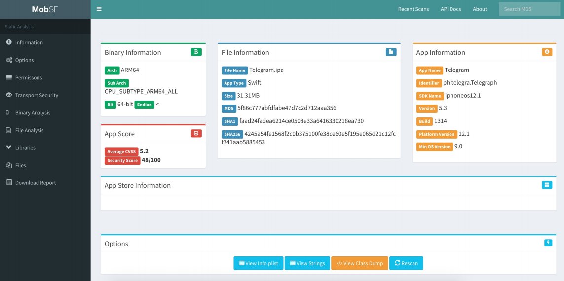 Là một ứng dụng tích hợp, tự động cho việc pentest, phân tích mã độc, đánh giá rủi ro cho cả static analysis cũng như dynamic analysis. Đây là một công cụ tự động rất mạnh và phổ biến cho việc kiểm thử. Chi tiết về cách cài đặt và sử dụng MobFS có thể xem thêm tại đây.