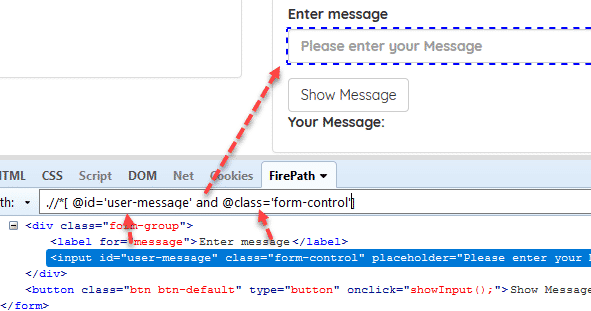 Example: //[@id=’user-message’ and @class=’form-control’]