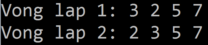 -> kết thúc vòng lặp 1 ta được [3 2 5 7]