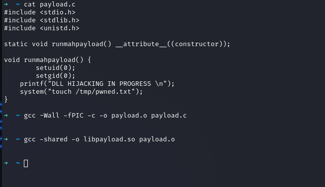 gcc -Wall -fPIC -c -o payload.o payload.c