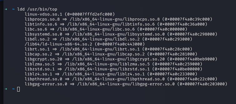 Để xem các thư viện của một application ta có thể sử dụng command ldd