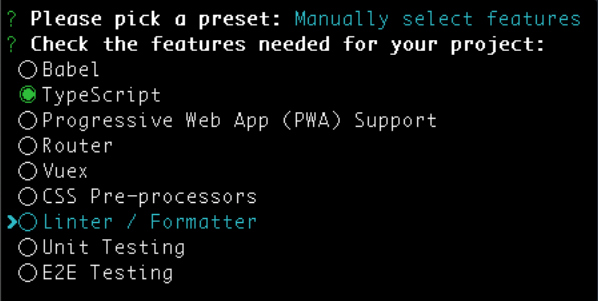 Với Vue CLI 3, bạn có thể tạo một dự án mới với TypeScript đã được cấu hình khá đơn giản bạn chỉ cần chú ý chọn TypeScript khi tạo dự án mới với CLI.