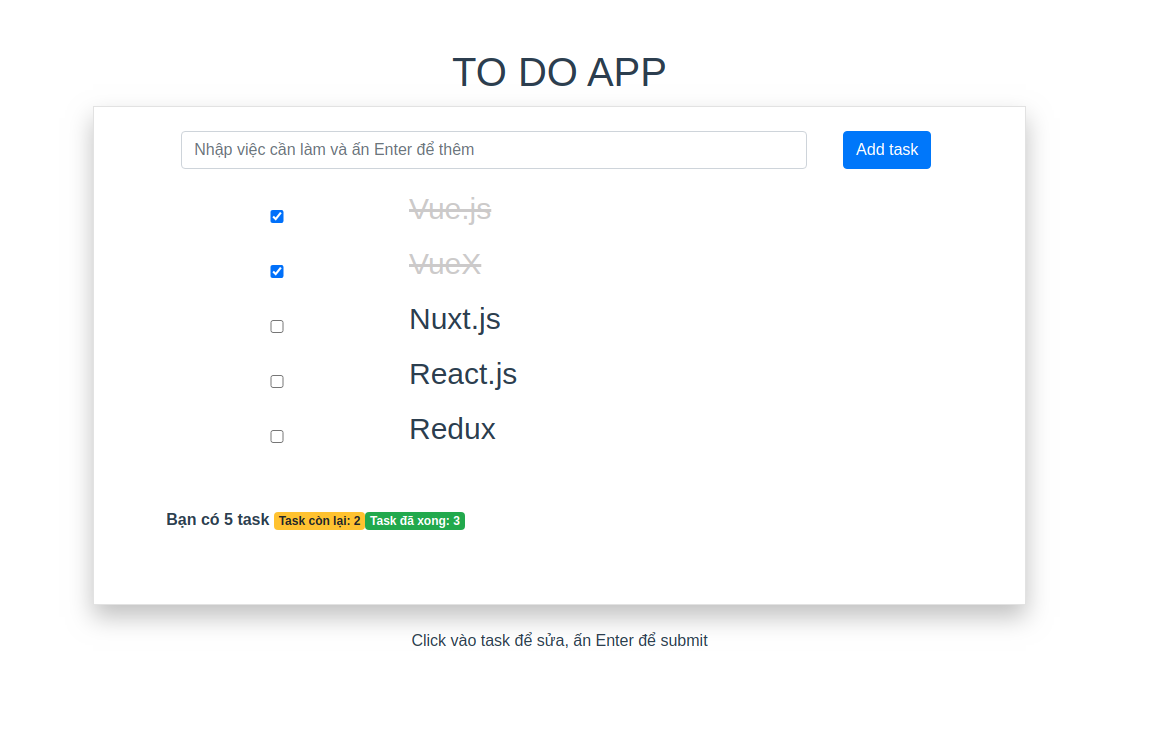 <span> Click vào task để sửa, ấn Enter để submit </span>