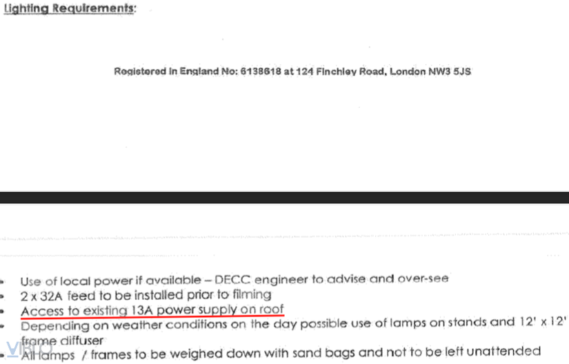 Ở phần phụ lục gần cuối hợp đồng, trong mục Lighting Requirement, chúng ta sẽ tìm được thông tin về nguồn điện sử dụng trên nóc nhà.
