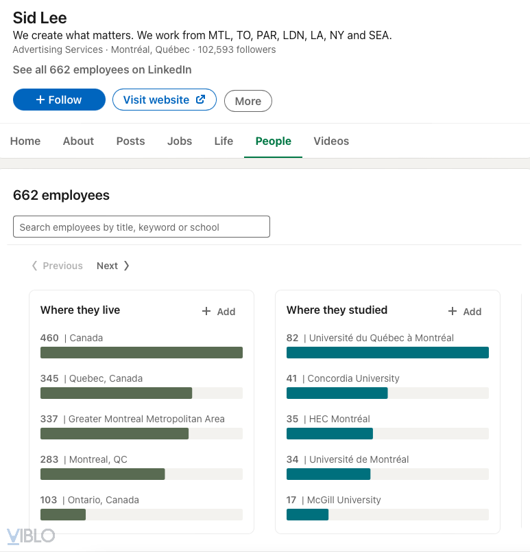 Với những thông tin về nơi ở, nơi làm việc, trường từng học và nơi làm việc thì tìm kiếm trên Linkedin là bước đầu tiên mình thực hiện. Linkedin là một mạng xã hội về việc làm rất lớn. Thậm chí, đối với lĩnh vực công nghệ thông tin thì Linkedin còn được trêu là "Tinder ngược". Đầu tiên, chúng ta sẽ tìm thông tin về công ty Sid Lee.