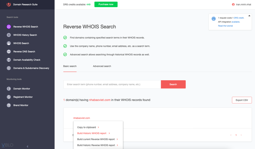 Trong bài này, chúng ta có thể sử dụng công cụ reverse whois search.
