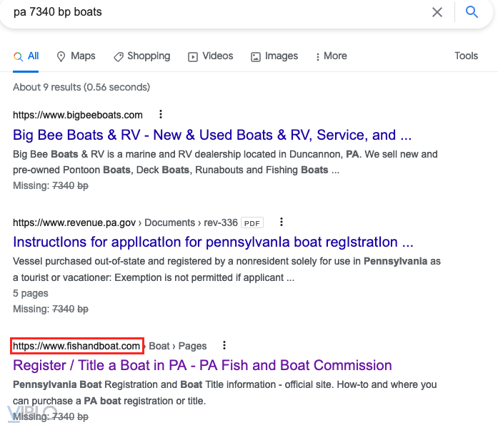 Tìm kiếm cái đã ra luôn kết quả rồi, PA trong mã trên thuyền là chỉ địa phận Pennsylvania, trang cá và thuyền kia là của đơn vị xử lý định danh tàu thuyền tại Pennsylvania, và đó chính là đáp án.