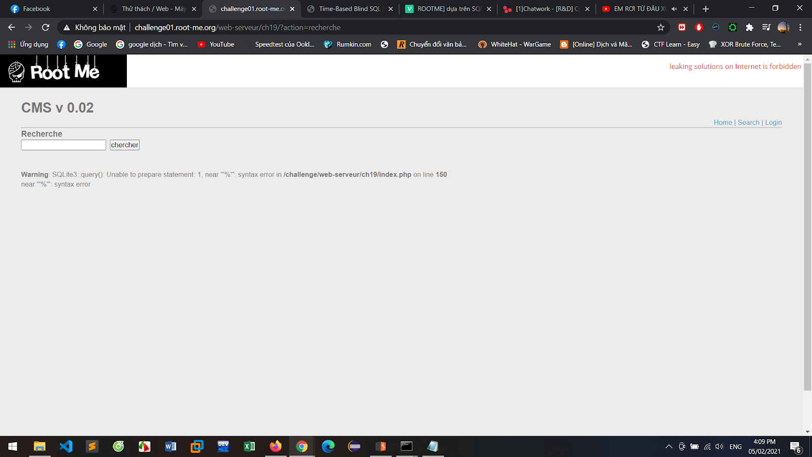 Như vậy chức năng tìm kiếm bị lỗi sqli và database sử dụng là SQLite3. Ta sẽ thực hiện khai thác trên SQLite3. Các bước khai thác thực hiện lần lượt như sau: