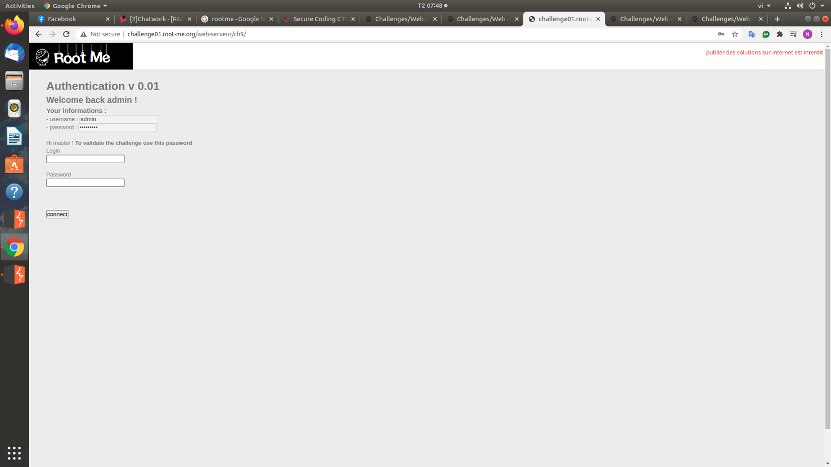 Link: http://challenge01.root-me.org/web-serveur/ch9/ Bài đầu tiên về sql injection nên cũng khá đơn giản. Họ cho mình 1 trang web có chức năng login.